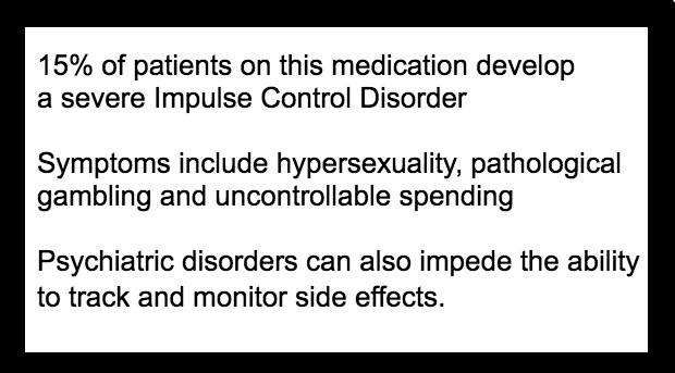 “Be informed – researchers want dopamine-agonist PD drugs to carry a Black Box warning for psychiatric disorder side-effects”